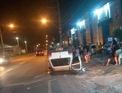 Carro capotou na avenida Itabuna na noite deste domingo.