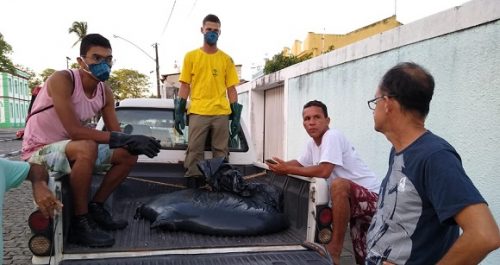 Pescadores e voluntários no trabalho diário de retirada e monitoramento das praias e mangues de Canavieiras.