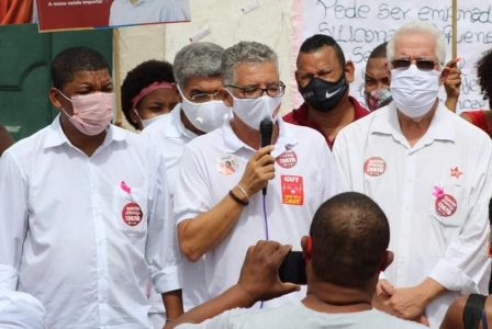 O atual presidente do (CES) Marcos Sampaio e Ricardo Mendonça da (FES-SUS), com Jorge Solla, em uma atividade política na capital do estado.
