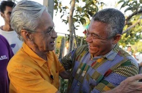 Caetano Veloso e Valmir Assunção em recente encontro no Acampamento do MLT. Foto: Rede Sociais.