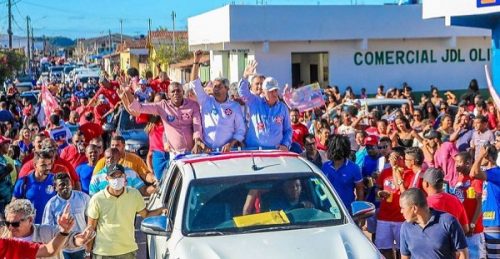 Jerônimo Rodrigues desfila pelas ruas de Medeiros Neto no extremo sul da Bahia……..