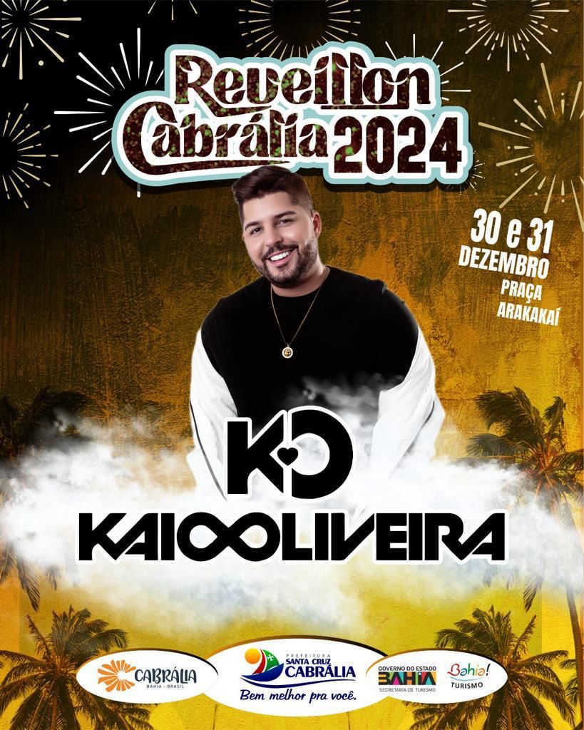A grande Festa da Virada que será realizada na Praça Arakakaí, contará com as participações dos artistas Kaio Oliveira, Marcelo Marrone, Amanda Rocha, Trem Bala, Sinho Ferrary e banda Vira e Mexe, além boas atrações da terra que ainda serão anunciadas pelo prefeito Agnelo Santos. O prefeito preparou um bonito Réveillon sob o som do Trio Avancini para comemorar a chegada de 2024 com muito entusiasmo e alegrias. Uma festa que ficará na história de Cabrália.