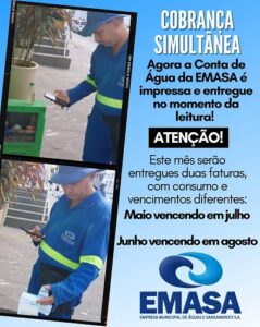 Com a implantação do sistema de leitura com impressão simultânea da conta de água que a Empresa Municipal de Águas e Saneamento (EMASA) inicia nesta primeira quinzena, os consumidores vão receber duas contas neste mês com consumo e vencimentos diferentes.
